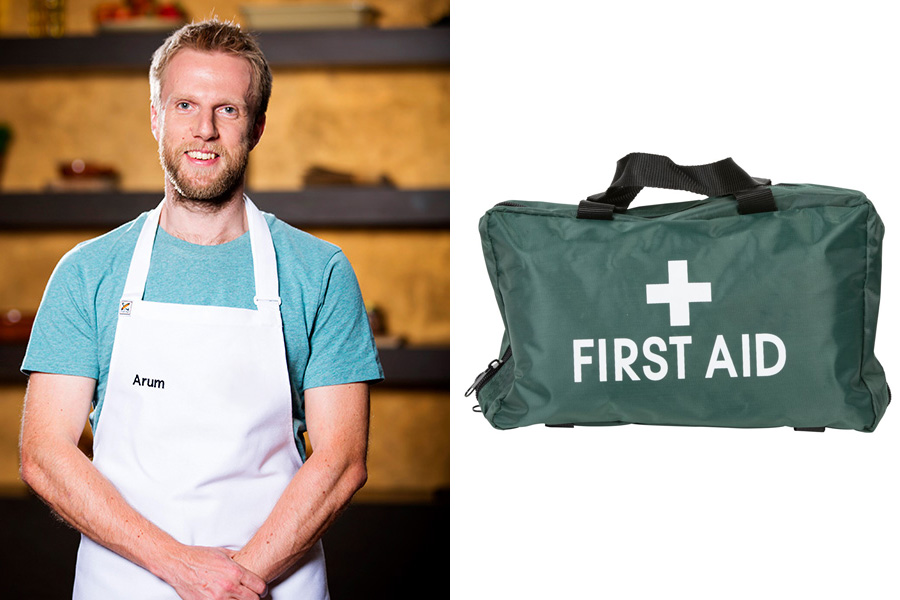 Update 12/06/2017: just when you think you know a guy he goes ahead and makes it to finals week. Mind. Blown. Congrats, little first aid kit. We wish you injury free passage to the Masterchef title.
