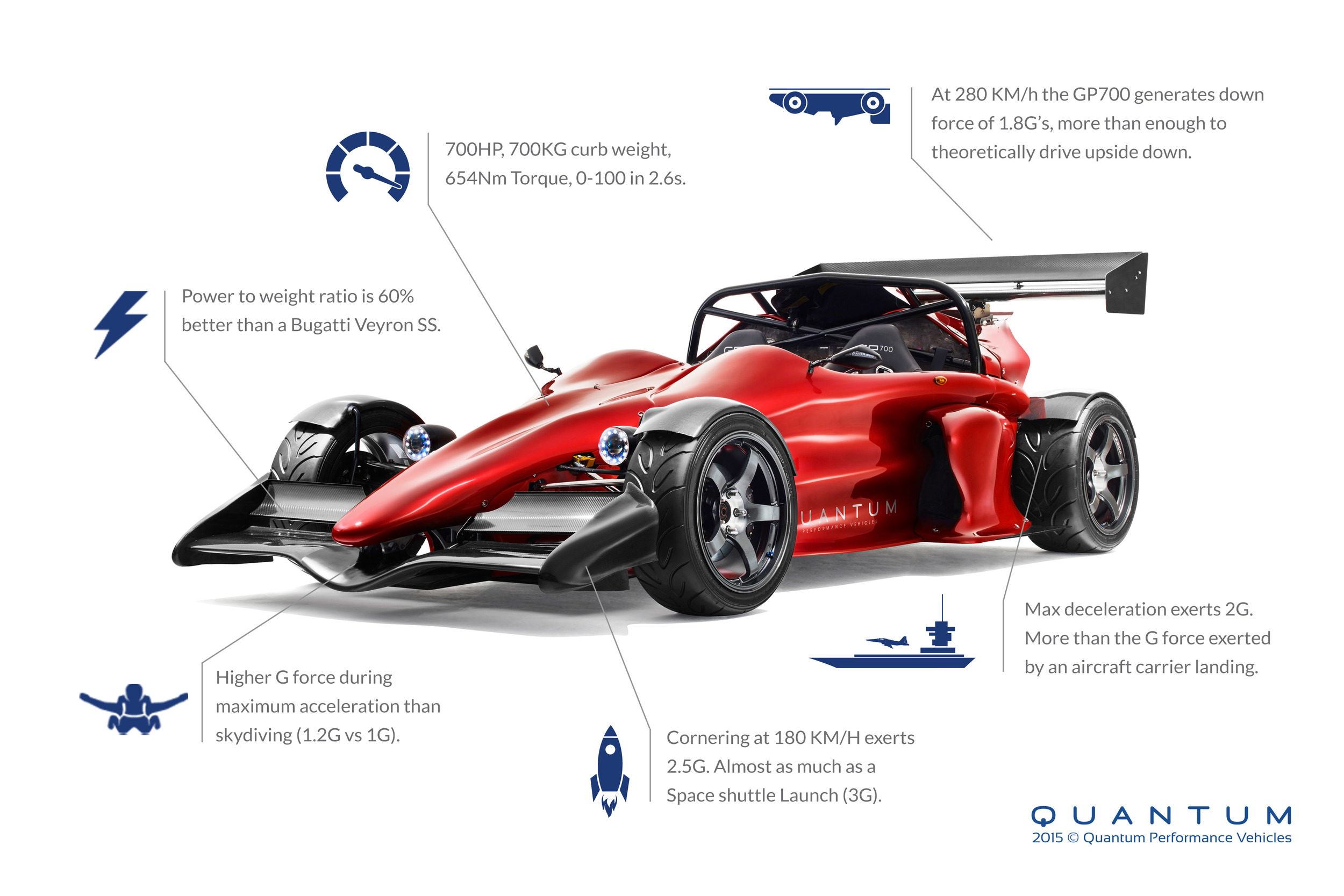 The GP700 is the first automobile made by Quantum Performance Vehicles of Australia. The GP700 is based on the Ariel Atom with the styling of an open wheeled Formula 3 car. It has two racing seats, a roll bar and not much else in the interior department. If you are looking for no-nonsense performance? This is definitely the vehicle for you–if you can get over the fact that you’re driving a racecar and might not be ideal for a date out, although it is road legal.