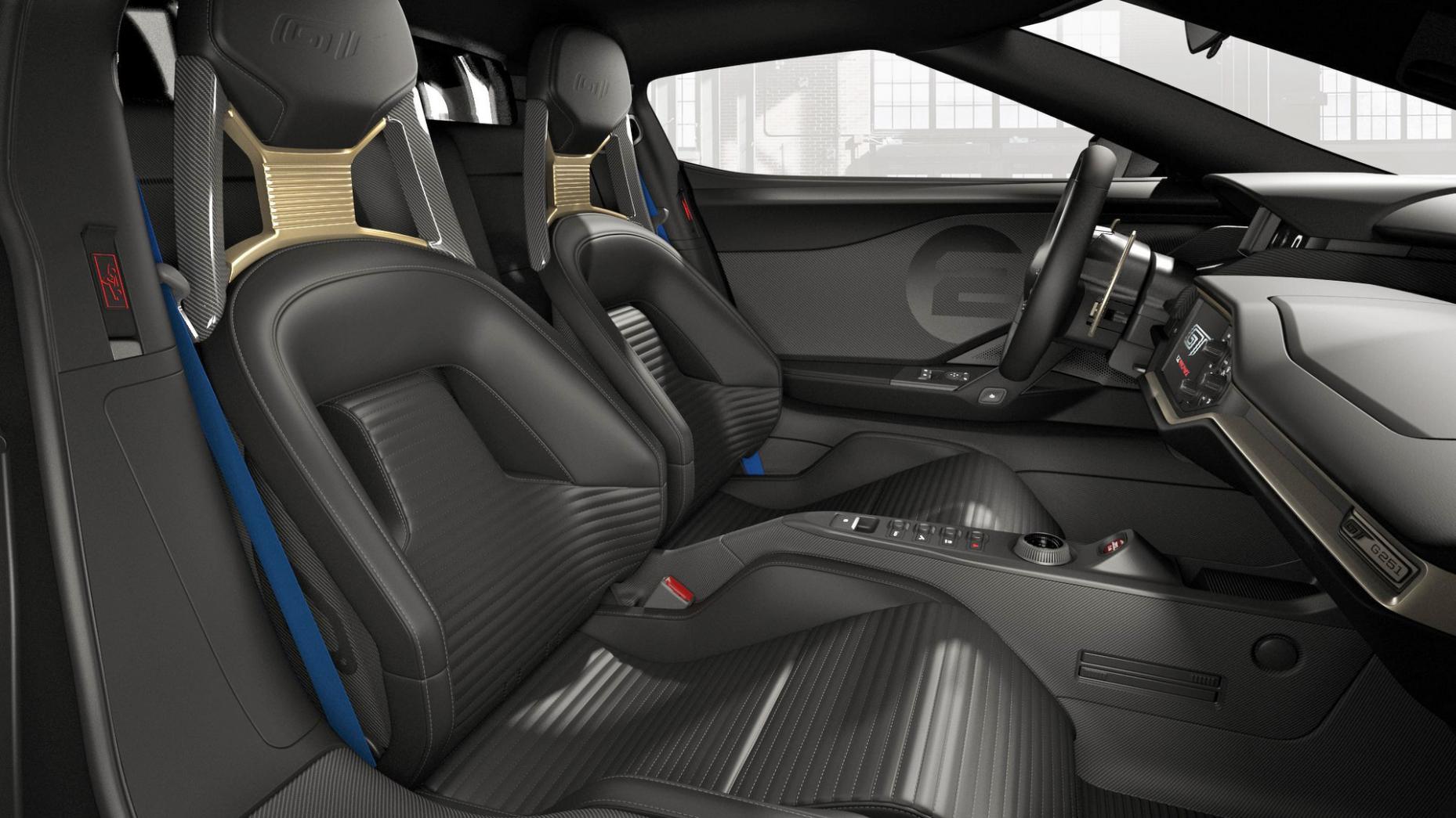 The Ford GT ’66 Heritage Edition is the mix of the new 2017 GT with the livery of the 1966 GT40 race car. This particular GT is painted Shadow Black with the choice of either Matte or Gloss finish. The GT comes with silver racing stripes and exposed carbon bits. The no. 2 graphics on the hood which is the number of the winning race car adds to the racing theme. The wheels have a gold satin clear coat finish.